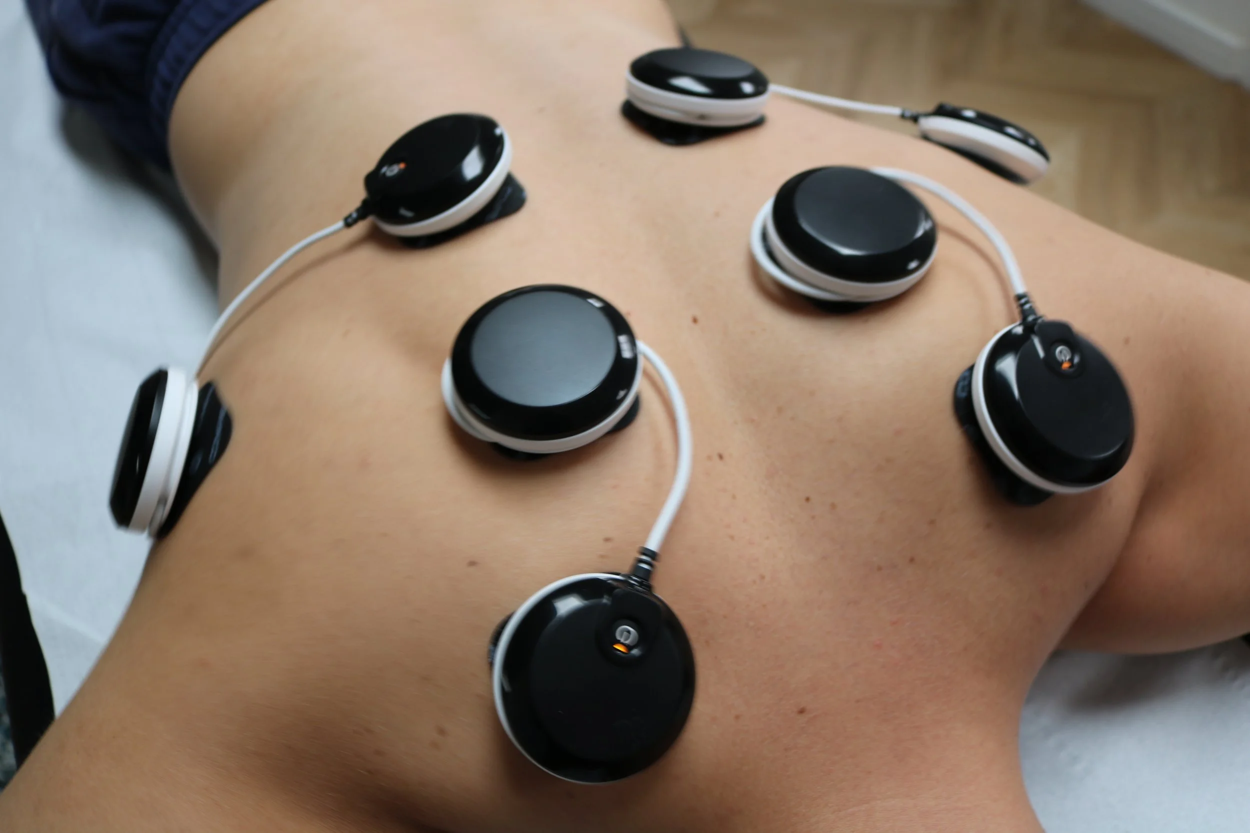 Electric Muscle Stimulation (EMS) therapy utilises electrical currents to stimulate the nervous system, promoting muscle activation. Small electrodes are placed on the affected area to deliver controlled electrical impulses, which trigger involuntary muscle contractions. This therapy is effective for enhancing muscle growth and strength, as well as for rehabilitation of injured areas. Additionally, EMS can improve nerve function and response, along with supporting muscular activation. The therapeutic benefits of EMS include: